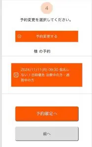 左図のように先に診察の予約を取っている場合予約変更のページが出現します。こちらにチェックをして「予約確定」を押してしまうと右図のポップが出現いたします。「はい」を押してしまうと先に予約していた診察はキャンセルされてしまいます。ご迷惑おかけいたしますが、ご注意の程よろしくお願いいたします。
