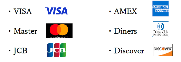 お支払いは現金と以下のクレジットカードがご利用可能です。